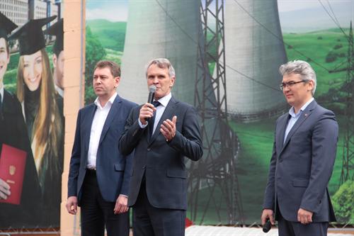 Поздравить будущих работников в сфере энергетики пришли – не много, не мало – будущие работодатели, директоры и управленцы энергетических компаний, без которых жители крупнейших городов Татарстана уже не представляют своё настоящее. С приветственным словом к первокурсникам обратились заместитель министра промышленности и торговли РТ Дамир Сафиуллин, заместитель Генерального директора ОАО «Сетевая компания» Рашат Галимзянов, Первый заместитель Генерального директора ОАО «Генерирующая компания» Айрат Сабирзянов и многие другие.