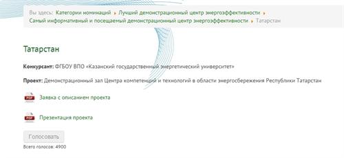 Просим Вас проголосовать за Центр компетенций и технологий в области энергосбережения Республики Татарстан!