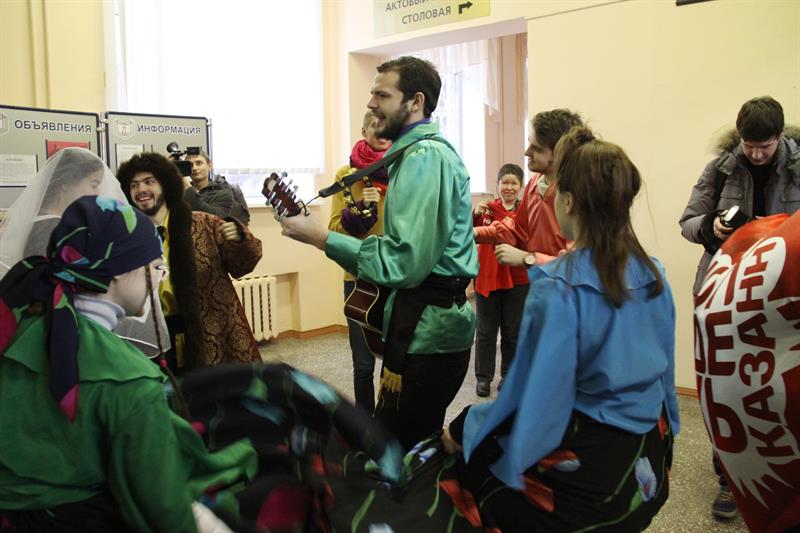 В ПРЕДДВЕРИИ ДНЯ СВЯТОГО ВАЛЕНТИНА ПО УЛИЦАМ НАШЕГО ГОРОДА ПРОЕХАЛ «АВТОБУС ЛЮБВИ». В ЭТОМ ТРАНСПОРТНОМ СРЕДСТВЕ СЕГОДНЯ РАБОТАЛ ШУТОЧНЫЙ ЗАГС. ОН ПРОЕХАЛ ЧЕРЕЗ ГЛАВНЫЕ ВУЗЫ ГОРОДА И ДЕРЕВНЮ УНИВЕРСИАДЫ.