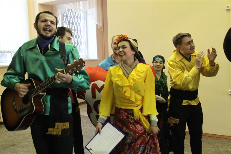Цыганский табор с гитарами, песнями, танцами и даже медведем устроили настоящий праздник влюбленным