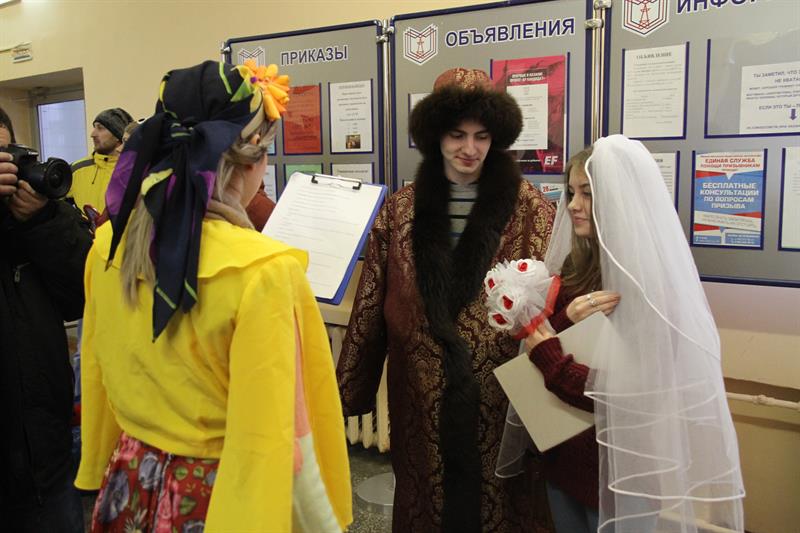 Благодаря «выездному» ЗАГСу в стенах нашего университета все желающие романтические  пары прошли репетицию заключения брака. А тем, кто ещё не нашел свою половинку, «автобус любви» помог в поисках.