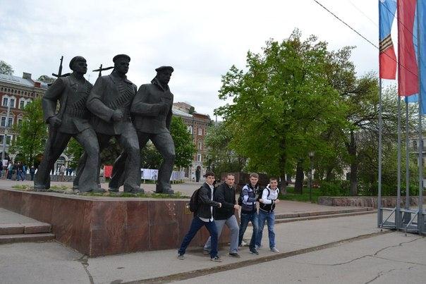 Активистами было пройдено немало километров, сделана не одна сотня фотографий и кульминацией дня стало совсем необыкновенное происшествие. Вечером, снова вернувшись на чкаловскую лестницу, студенты неожиданно попали на небольшой концерт, организованный Российским Союзом Молодежи и посвящённый жертвам в Великой Отечественной Войне. Выступали нижегородские студенты и первокурсникам так все понравилось, что они предложили выступить и казанской делегации. Выступление произвело фурор! Настоящий хор из 49 человек спел сначала "Катюшу", а затем веселую песню про любовь. Рукоплескала вся площадь, нижегородцы остались очень довольными импровизированным выступлением.