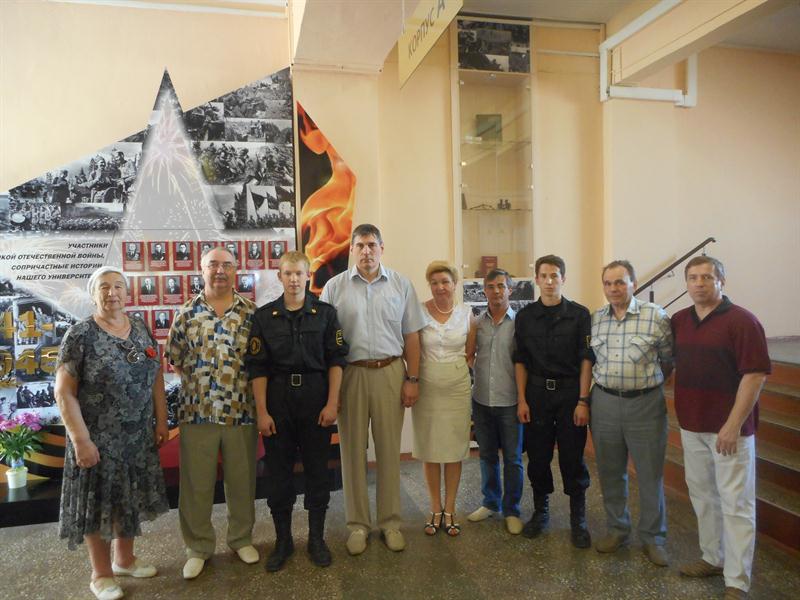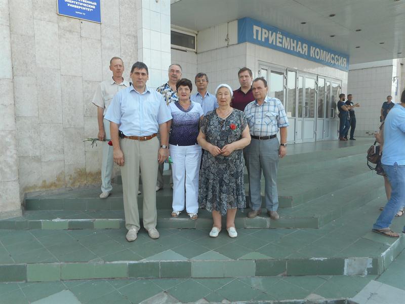 Сегодня, 15 июня, Энергоуниверситет посетили бывшие преподаватели военной кафедры Казанского филиала МЭИ, которые работали на кафедре в то время, когда произошла трагедия. В.М. Колистратов, И.М. Гайфетдинов, В.А. Царев, А.Л. Ситков, И.Г. Соловьев вместе с бывшим заведующим военной кафедрой, а ныне начальником штаба ГО, А.Н. Черняковым и начальником отдела патриотического воспитания Д.И. Дергуновой почтили память коллеги Р.М. Гилязова и курсанта С.В. Герасимова.