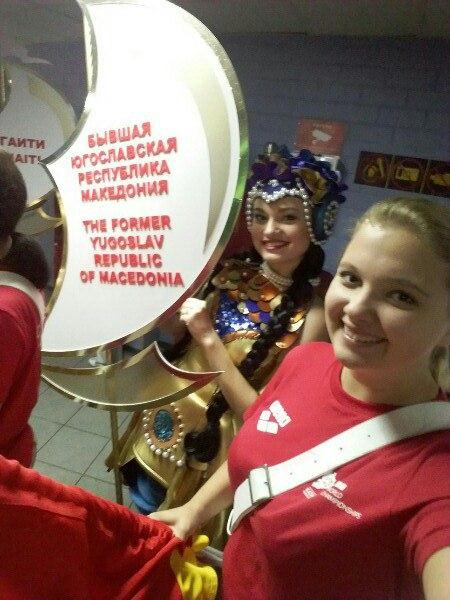 Студентки, отобранные на Чемпионат в качестве участниц наградной группы, выводили атлетов, украшая парад своими улыбками.