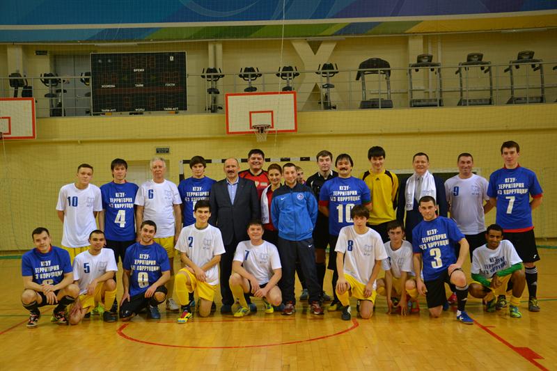 В матче, который прошел под девизом «КГЭУ – территория без коррупции!», встретились команды преподавателей и студентов КГЭУ и команда прокуратуры Республики Татарстан.