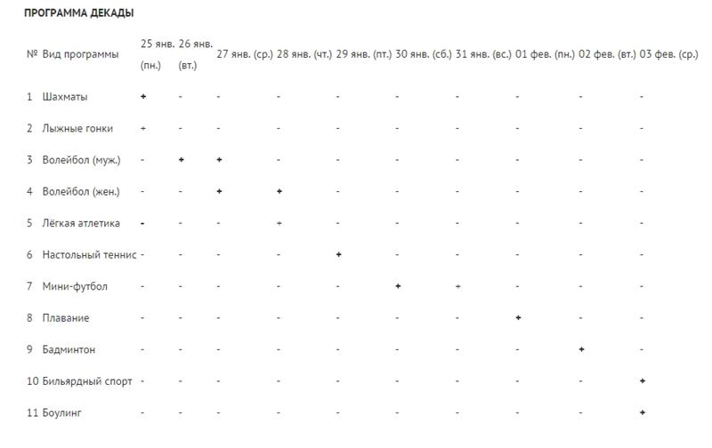 Положение о Декаде и расписание соревнований