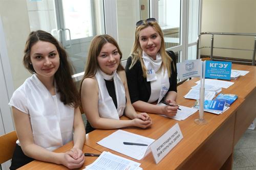 После экскурсии всех гостей ожидал актовый зал КГЭУ, в котором были расставлены стенды с самыми интересными разработками кафедр вуза. Доброжелательные сотрудники кафедр рассказывали всем желающим об уникальности своей кафедры и её направлений подготовки. А в фойе перед актовым залом всех пришедших встречал музыкальный флэшмоб. Тут же проводилась и викторина с раздачей победителям небольших сувениров.
