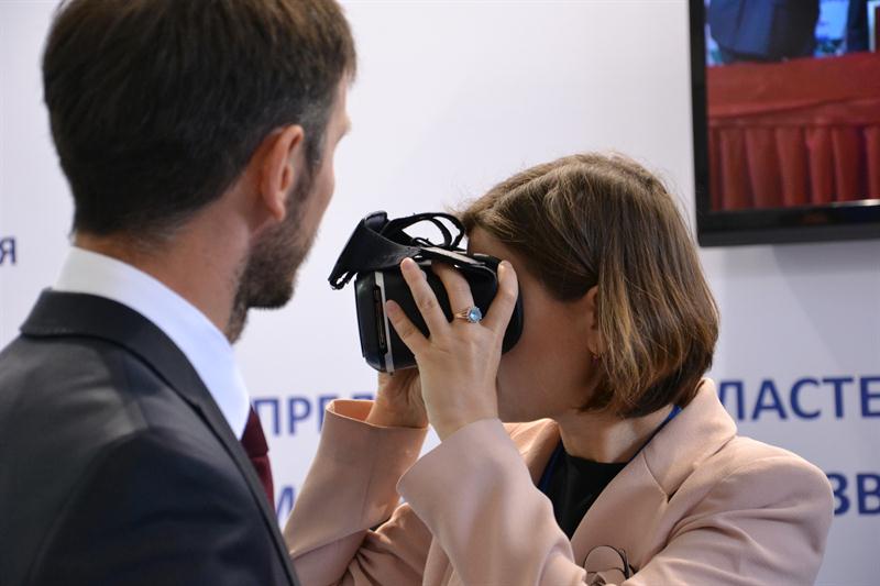 Большой популярностью у посетителей выставки пользуются очки виртуальной реальности с компьютерным приложением «Экскурсия по учебно-исследовательскому полигону Подстанция 110/10 кВ».