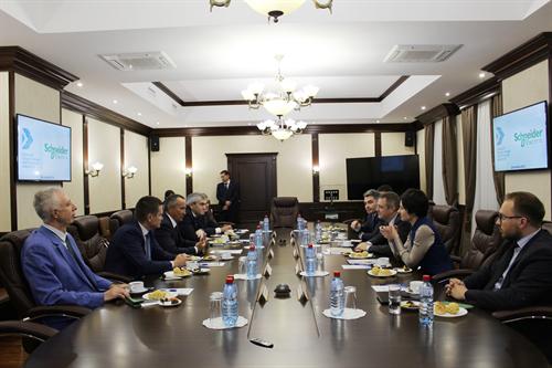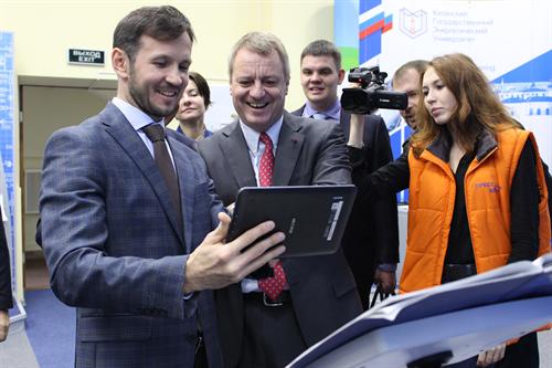 28 ОКТЯБРЯ ДЕЛЕГАЦИЯ «SCHNEIDER ELECTRIC» ВО ГЛАВЕ С ПРЕЗИДЕНТОМ АО «SCHNEIDER ELECTRIC» В РОССИИ СТРАНАХ СНГ ЙОХАНОМ ВАНДЕРПЛАЕТСЕ ПОСЕТИЛА КАЗАНСКИЙ ГОСУДАРСТВЕННЫЙ ЭНЕРГЕТИЧЕСКИЙ УНИВЕРСИТЕТ, ГДЕ ОНА СМОГЛА ОЗНАКОМИТЬСЯ С НАУЧНЫМ И УЧЕБНЫМ ПОТЕНЦИАЛОМ ЕДИНСТВЕННОГО В ПОВОЛЖЬЕ ЭНЕРГЕТИЧЕСКОГО ВУЗА.