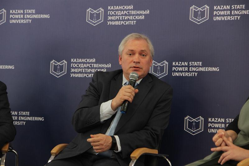 Директор Центра компетенций и технологий в области энергосбережения Р.Р. Аскаров поделился опытомпрофориентационной работы со школьниками. Сотрудники Центра активно занимаются просвещением среди учащихся, рассказывая о профессии энергетика.