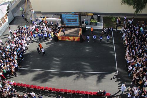 Уроки позади, лекции впереди – сегодня же им не до учебы – первокурсники КГЭУ встретились на праздничной линейке, чтобы познакомиться с вузом и друг с другом. Сколько всего новых студентов пополнили КГЭУ было видно еще до начала торжества. Скопление молодежи можно было наблюдать с высоты 50 метров. Вот где уж точно яблоку не упасть.