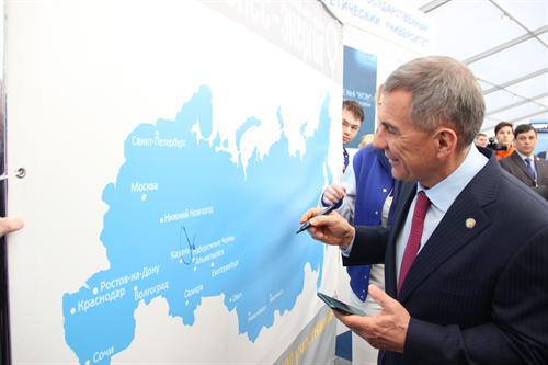 Остановился у стенда КГЭУ и Президент республики Рустам Минниханов. Глава Татарстана познакомился с представленными экспонатами и отметил, что выставка является эффективной площадкой для обсуждения вопросов энергоресурсосбережения и ознакомления с современными технологиями этой отрасли.