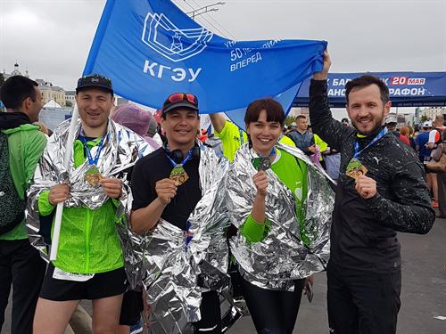 А вот Рафаэль Рафильевич Аскаров, директор Центра компетенций и технологий в области энергосбережения КГЭУ, Рустем Наимович Мухаметжанов, доцент кафедры ЭСиС, Константин Николаевич Мулюкин, доцент кафедры ЭХП, Марат Фердинантович Садыков, зав.кафедрой ТОЭ пробежали 42,2 километра.
