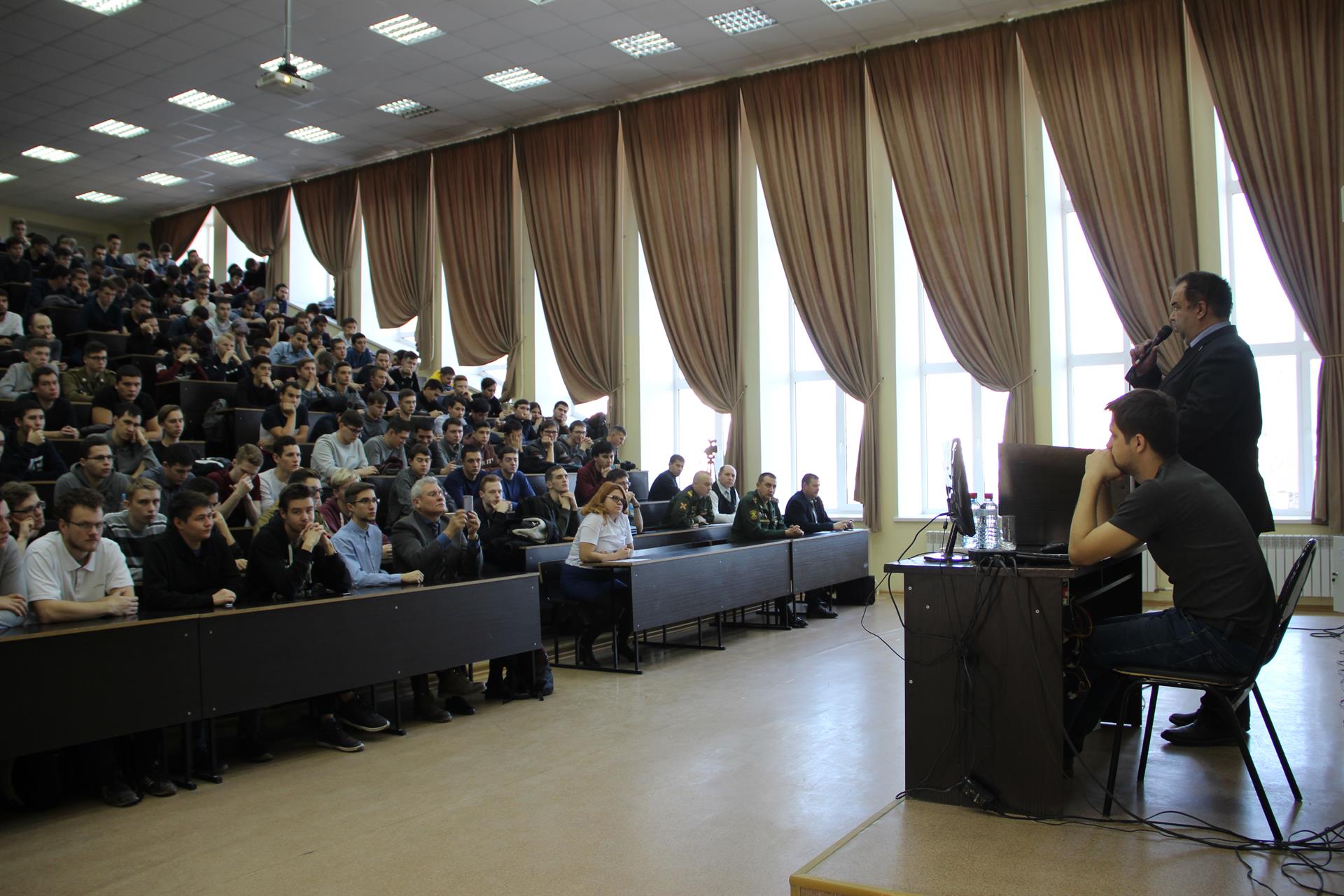 На встрече присутствовали 344 человека. Принимали участие: помощник прокурора Кировского района г. Казани Гордеева К.И., начальник отделения призыва ВК Кировского и Московского районов г. Казани Султанов Р.Ю., начальника пункта отбора на контрактную службу РТ Елагин В.В., председатель правления ДОСААФ РТ Диннигулов Д.Р., директор ИЭЭ Ившин И.В., заместители директора Доломанюк Л.В., Степанова Е.М., заместитель директора ИТЭ Демидова Г.П., заместитель директора ИЦТЭ Романова Л.М., и.о. начальника ОСО Стеценко Д.Н.