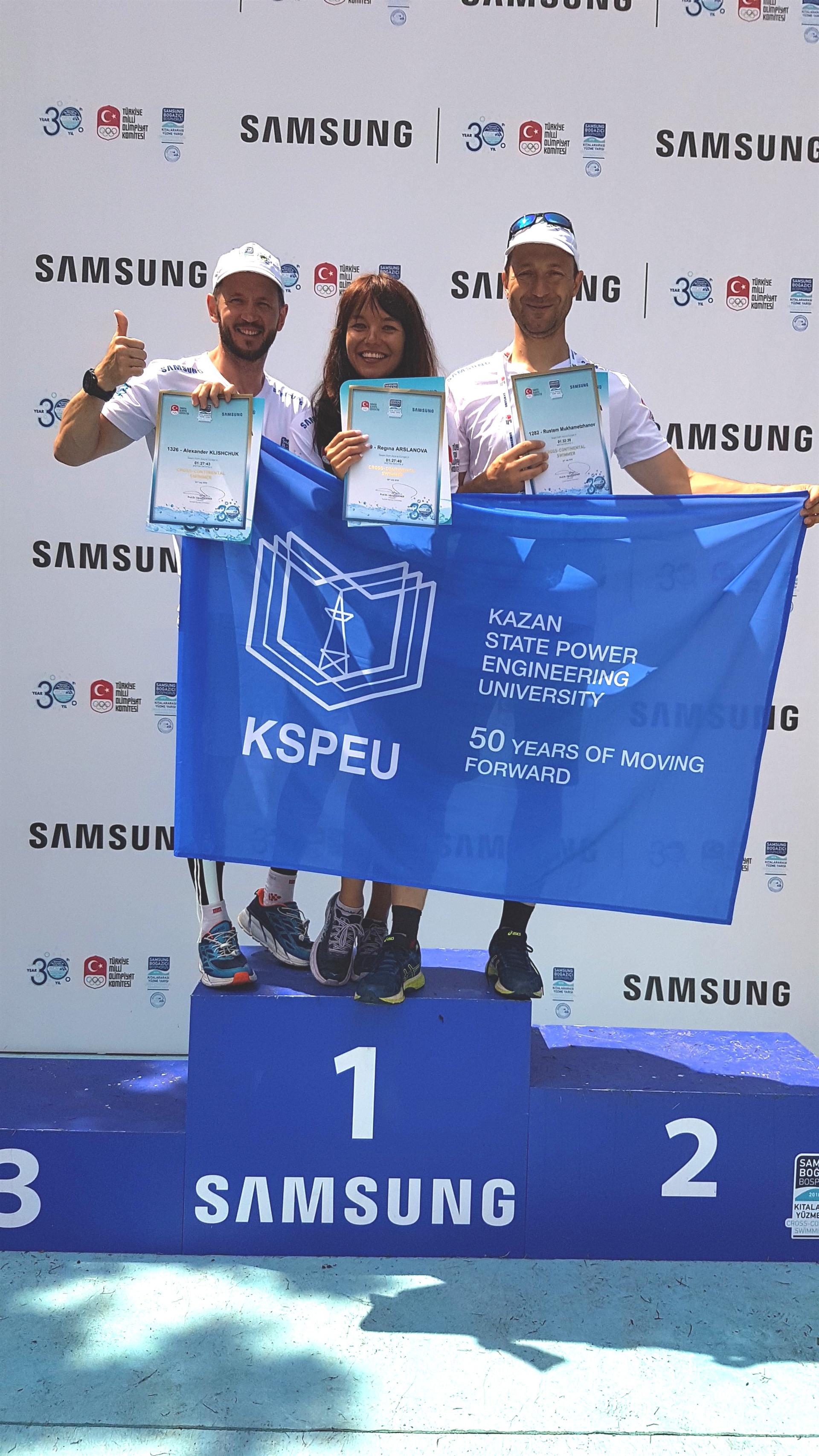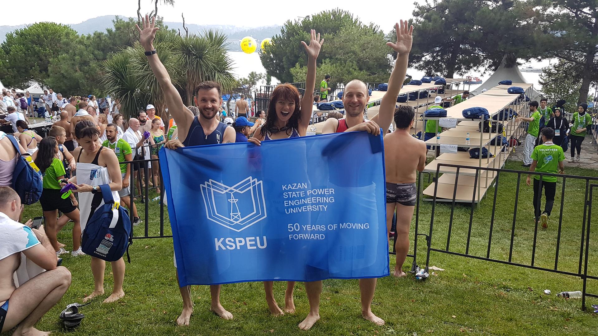 В следующей гонке команда университета в составе: Р.А. Арсланова, Р.Р. Аскаров и Р.Н. Мухаметжанов приняли участие в Международном межконтинентальном заплыве в проливе Босфор протяженностью 6,5 км, прошедшем 22 июля в Стамбуле.
