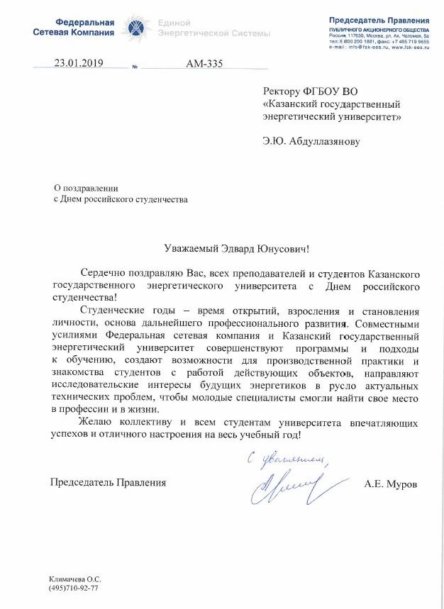 ФЕДЕРАЛЬНАЯ СЕТЕВАЯ КОМПАНИЯ ПОЗДРАВИЛА КГЭУ С ДНЕМ СТУДЕНТА!
