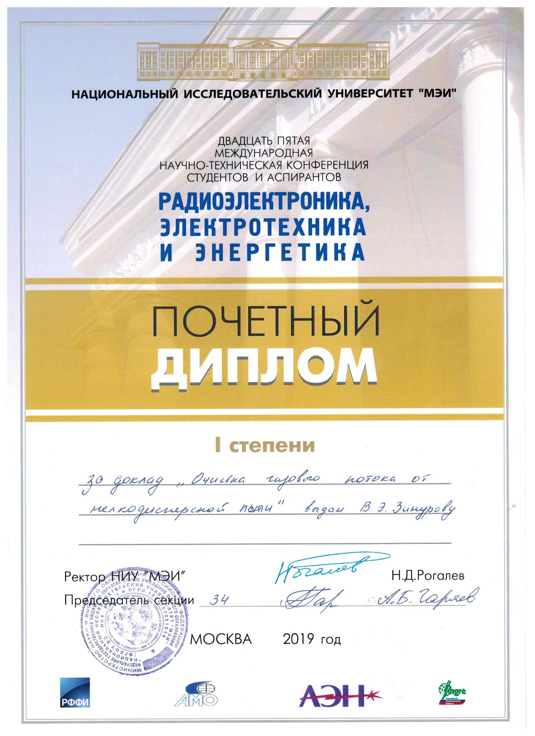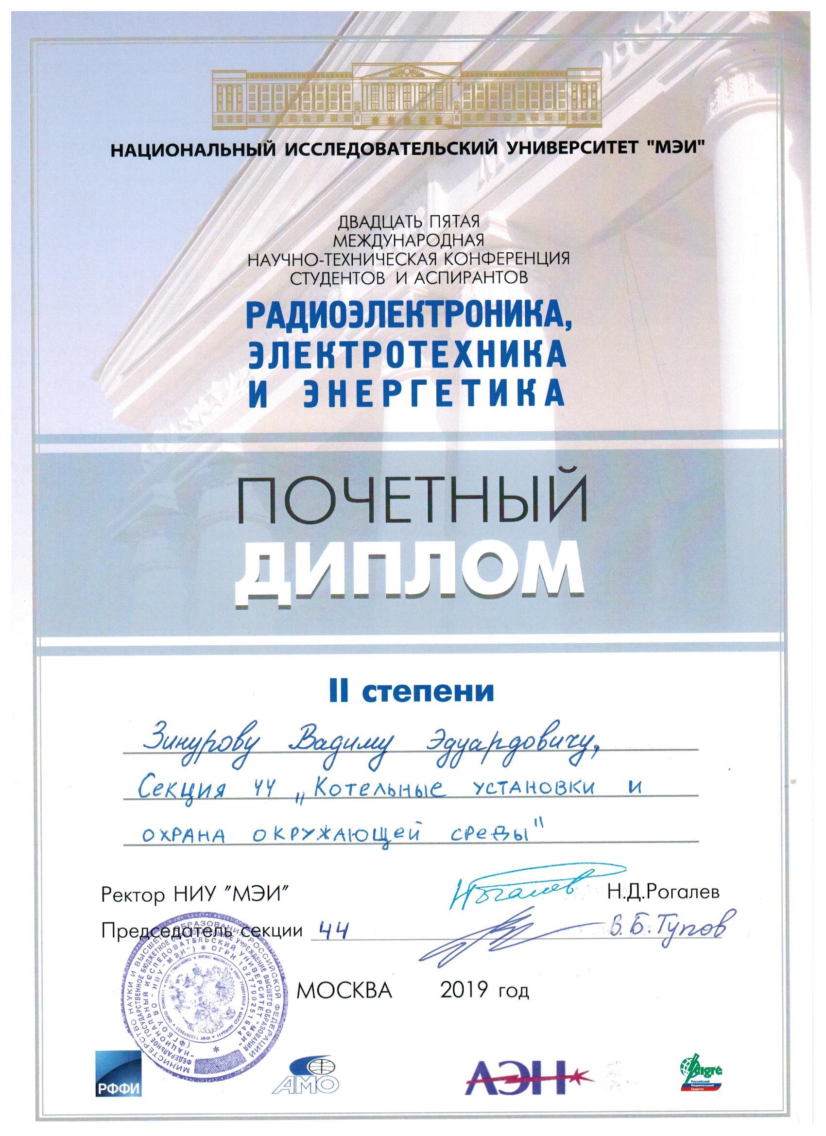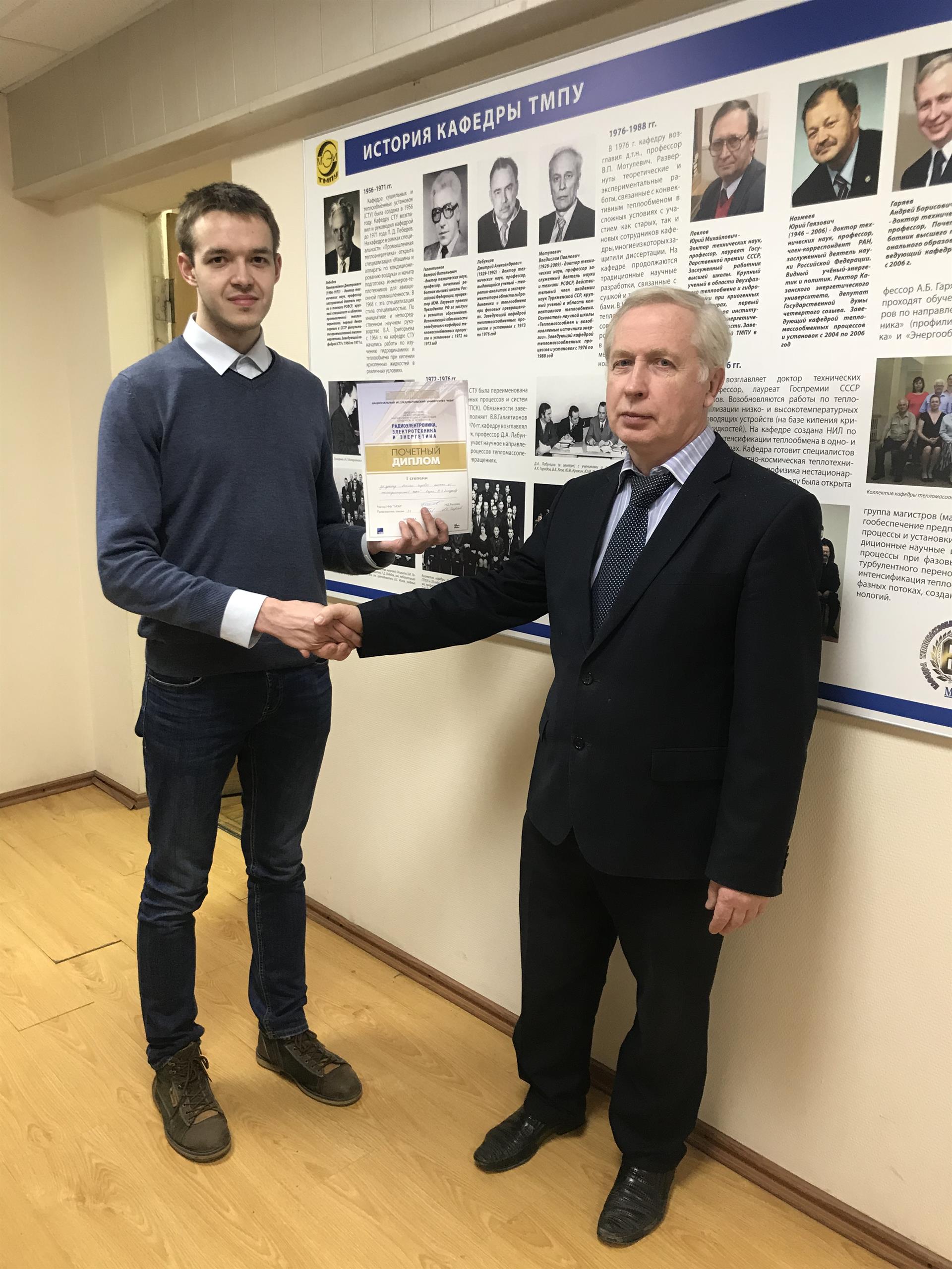 3. Зинуров В.Э. магистрант 2 года обучения кафедры «ТОТ». Научный руководитель: Дмитриев А.В., зав. кафедры «ТОТ», д.т.н., доцент. Результат - дипломы 1 и 2 степени.