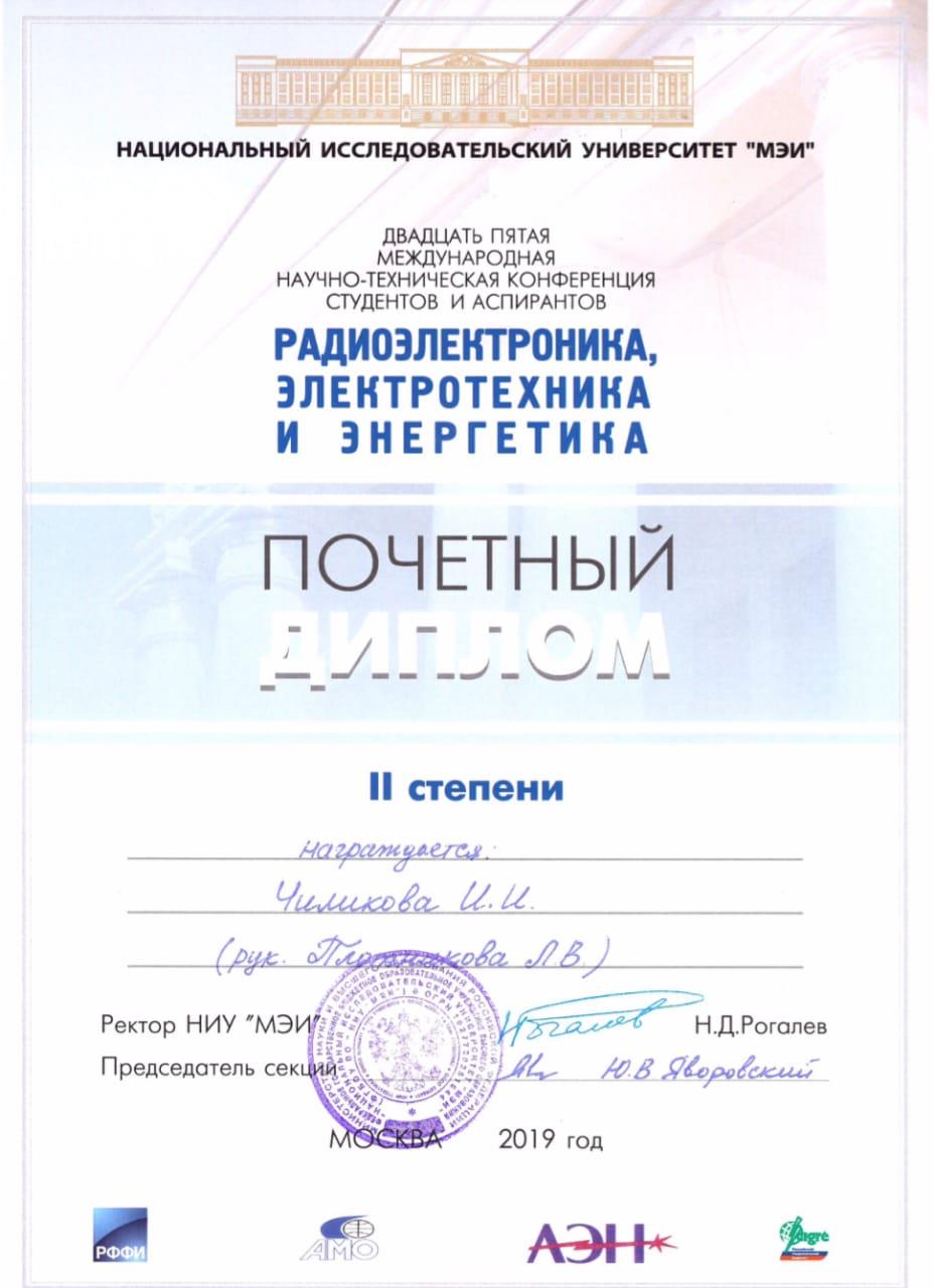 14-15 марта 2019 года в Национальном исследовательском университете «МЭИ» (г. Москва) состоялась двадцать пятая Международная научно-техническая конференция студентов и аспирантов «РАДИОЭЛЕКТРОНИКА, ЭЛЕКТРОТЕХНИКА И ЭНЕРГЕТИКА».