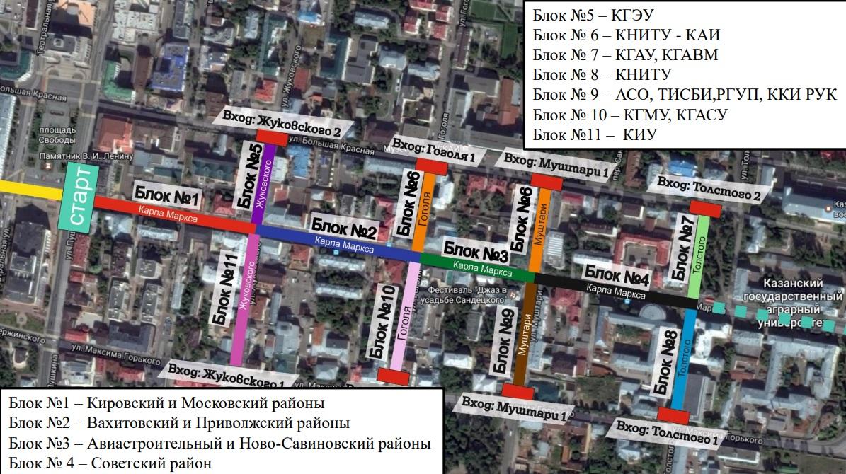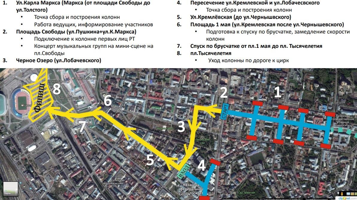 Всех преподавателей, сотрудников и студентов приглашаем присоединиться к этой достойной акции. Просим обратить внимание на план колонны - представители КГЭУ собираются со стороны улицы Жуковского (на карте - блок №5). Начало формирования колонны - 13:00, старт колонны в 15:00. С собой не рекомендуется проносить большие сумки и рюкзаки.