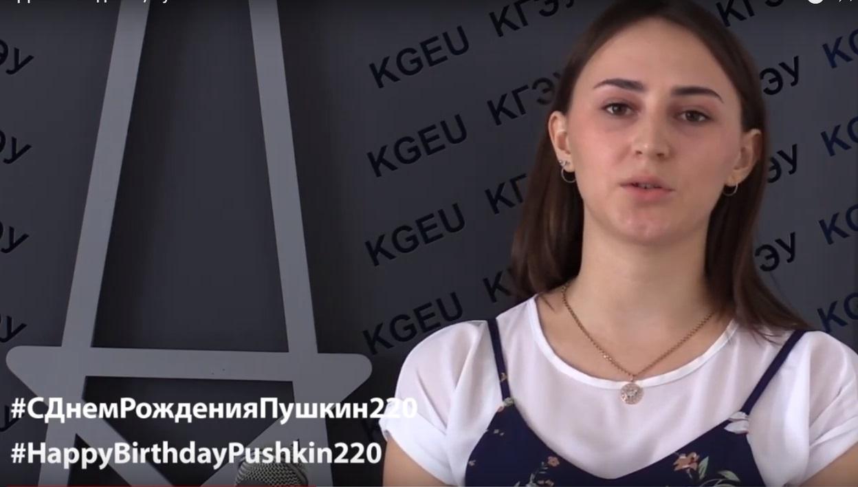 При содействии сотрудников библиотеки, кафедры иностранных языков и пресс-службы вуза в акции приняли участие студенты КГЭУ: Фандио Нана Сириль, Меляхматова Кристина, Меньщиков Никита, Зиатдинов Динар, Дьячук Евгений, Лукашин Ярослав, Таначев Никита, Колезнев Никита, Логачев Владислав, Хасанов Динар и аспирант вуза Ахмад Аль Заккар. Они прочитали строки из стихотворений Пушкина «Я вас любил…», «Если жизнь тебя обманет…», «Ночь», «Узник» - на русском, татарском, английском, немецком, арабском и французском языках.