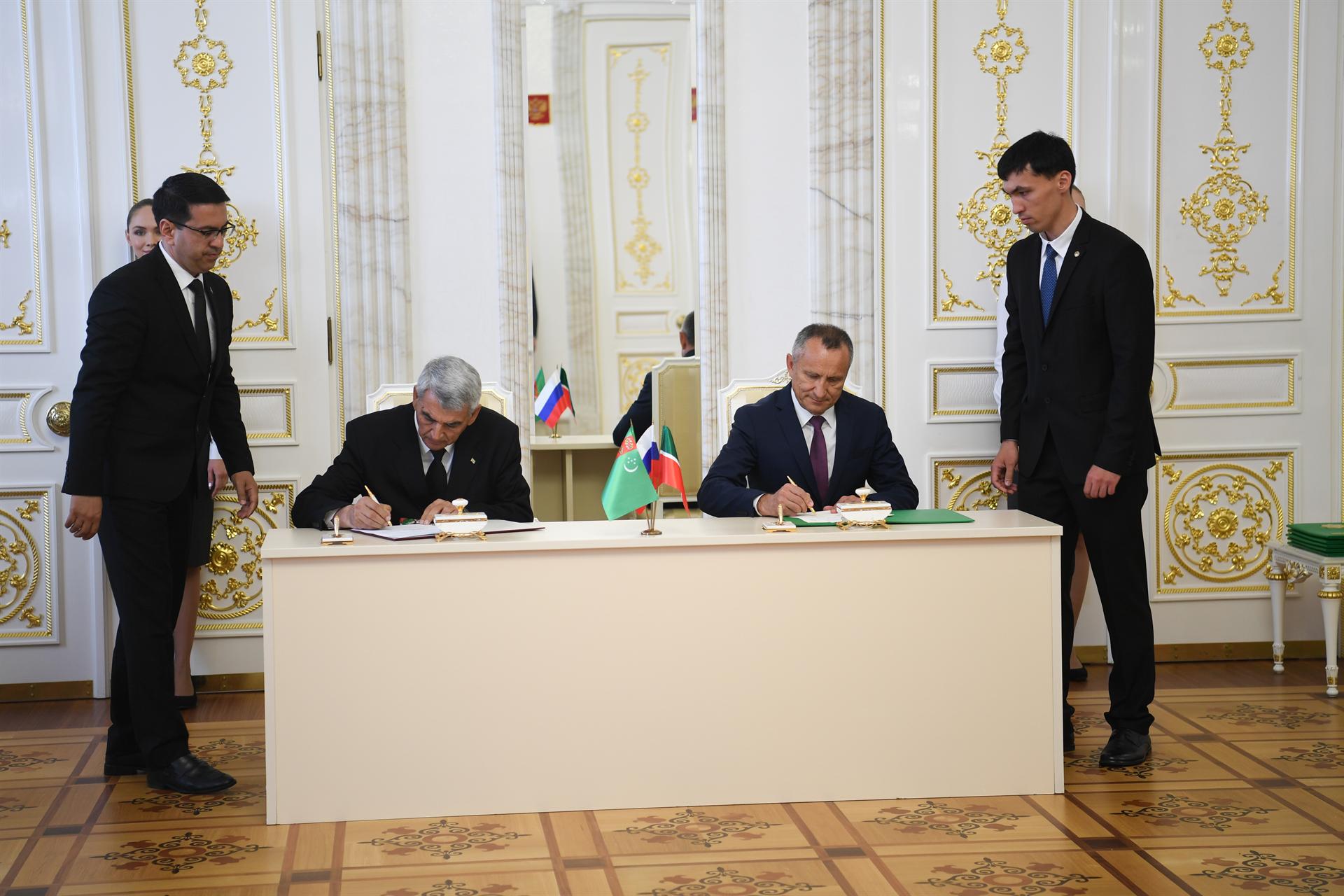 Основной частью деловой программы стала двусторонняя встреча Президента Республики Татарстан и Президента Туркменистана в Казанском Кремле и переговоры в расширенном составе.