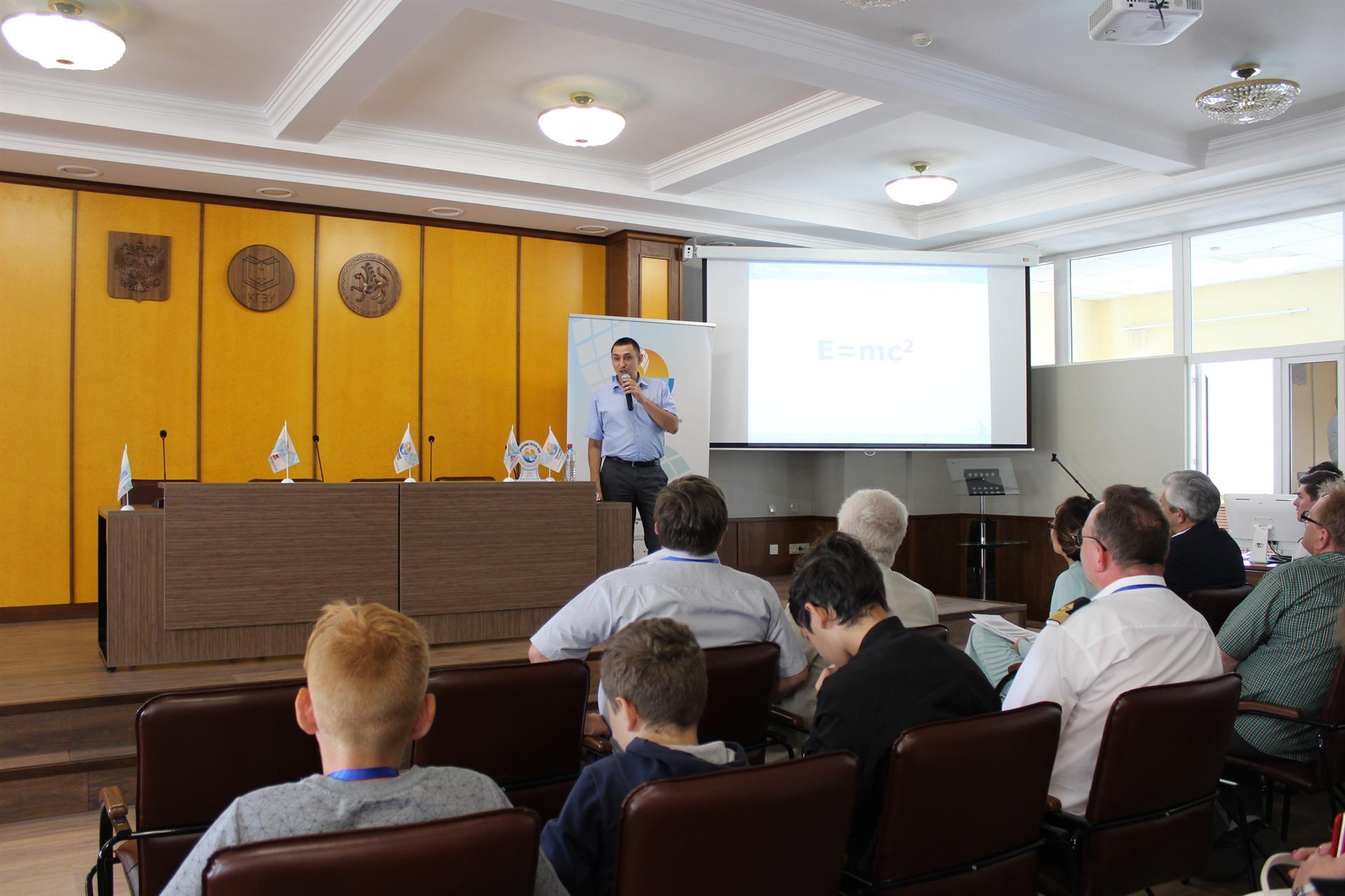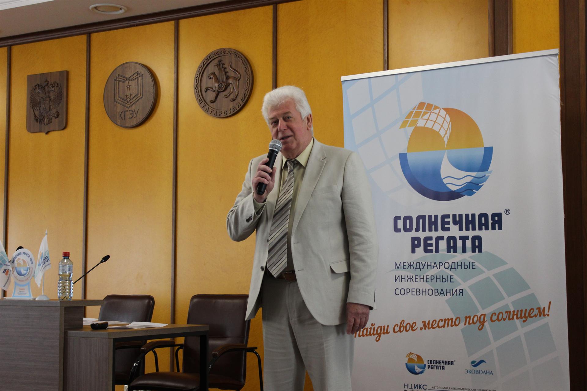 Перед участниками соревнований и их руководителями выступил заведующий кафедрой ВИЭ КГЭУ Наиль Тимербаев, который рассказал о возобновляемой энергетике. В частности, он остановился на том, какая работа ведется в Татарстане по строительству ветропарка.