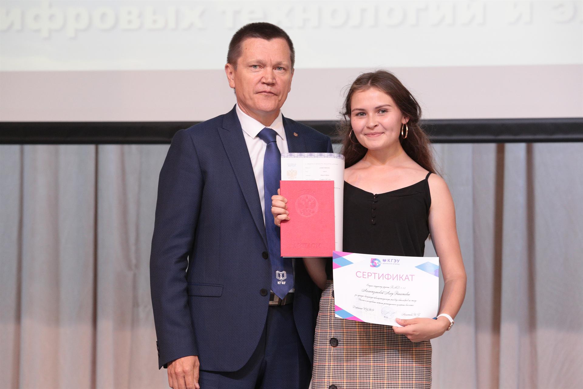 Дипломы с отличием вручил первый проректор – проректор по учебной работе Александр Леонтьев, который подчеркнул, что КГЭУ по праву считается одним из лучших вузов страны, и качество образования здесь отвечает самым высоким стандартам. Поздравить выпускников также пришли заведующие выпускающих кафедр и руководители образовательных программ: Олег Козелков, Юлия Торкунова, Юрий Смирнов, Эльмира Нуруллина, Алина Махиянова, Юлия Железнякова.