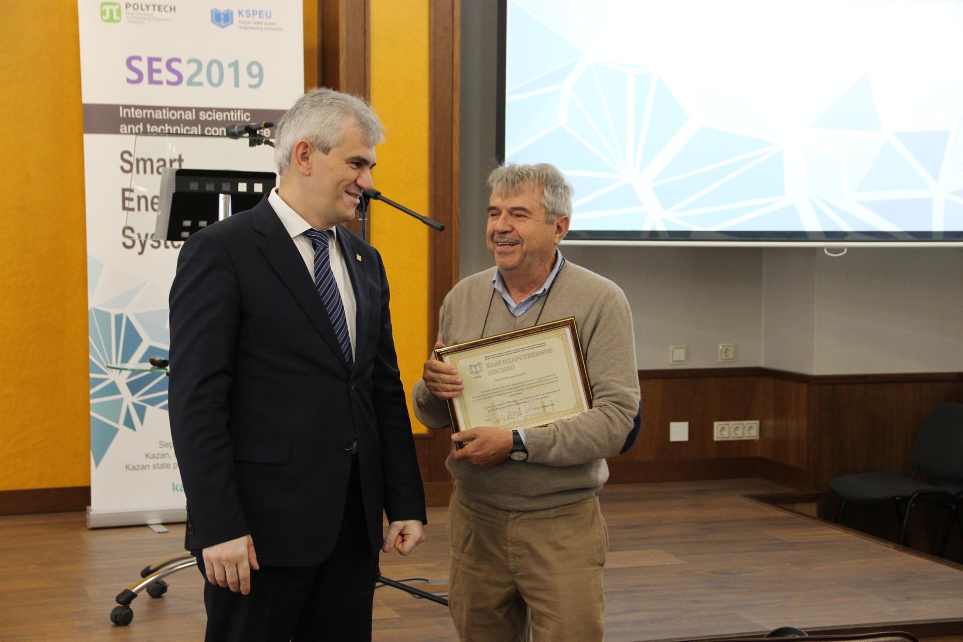 Председатель программного комитета конференции, проректор по научной работе КГЭУ Эмиль Шамсутдинов выразил благодарность приглашенному сопредседателю Международного научного комитета профессору университета Генуи Пьетро Зунино. Напомним, он провел четыре открытые лекции для студентов и преподавателей Казанского государственного энергетического университета. Кроме того, он являлся руководителем английской секции SES-2019.