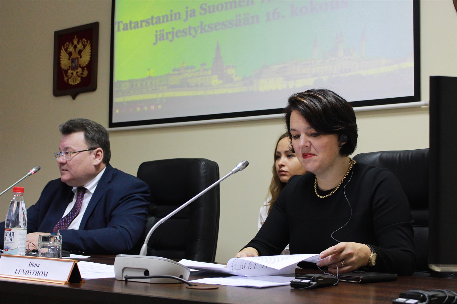 С приветственным словом от имени финской стороны выступила сопредседатель рабочей группы, гендиректор Департамента предпринимательства и инноваций Министерства занятости и экономики Финляндской Республики Илона Лундстрем: «У нас имеется много областей и огромное количество возможностей для сотрудничества с Республикой Татарстан. На встречу приехали представители финских компаний, которые подготовили свои предложения для расширения наших контактов».