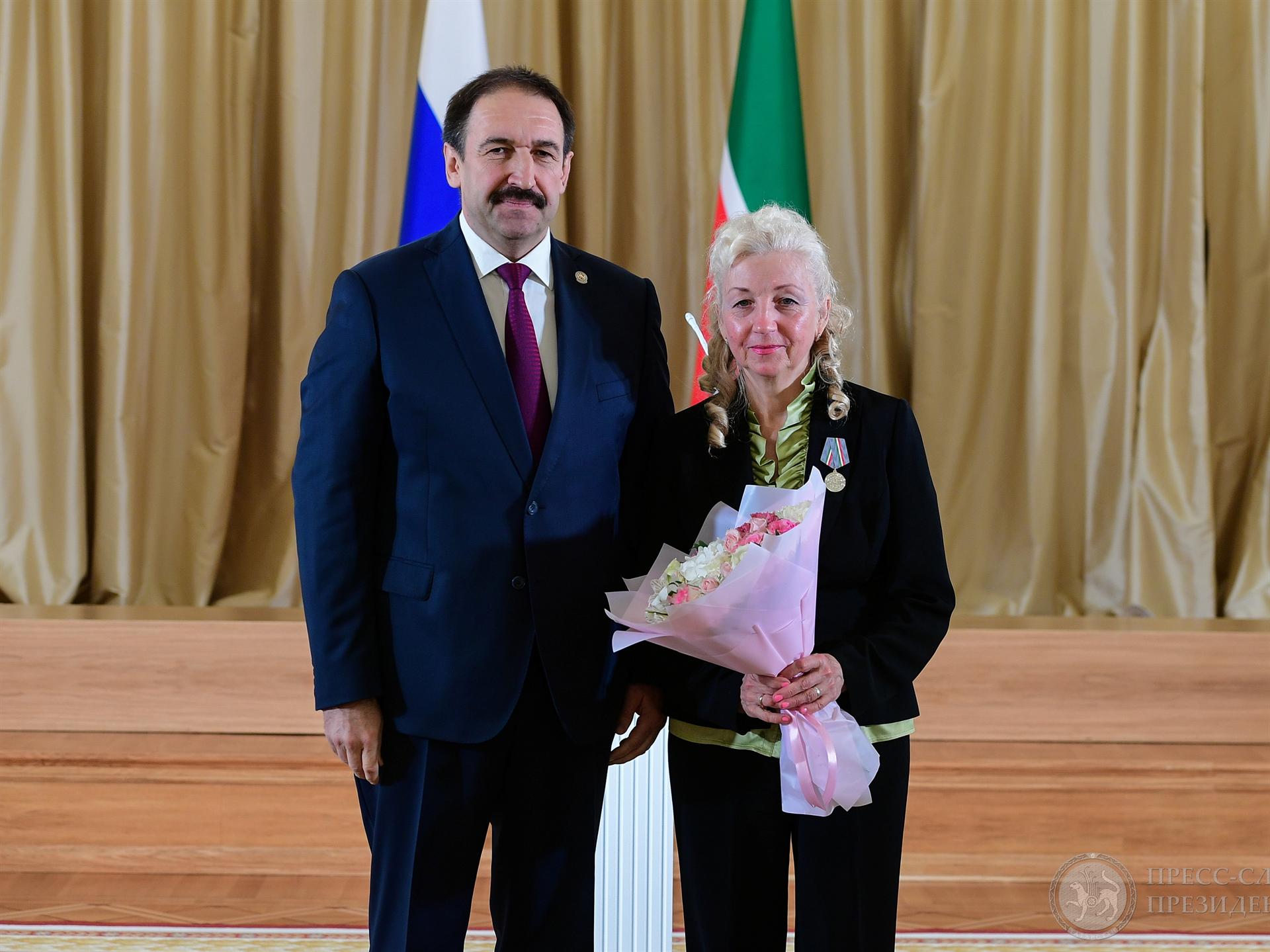 Премьер-министр РТ Алексей Песошин вручил медаль Республики Татарстан "За доблестный труд" за многолетнюю плодотворную работу на благо республики доценту кафедры ЭОП Людмиле Александровне Голицыной.