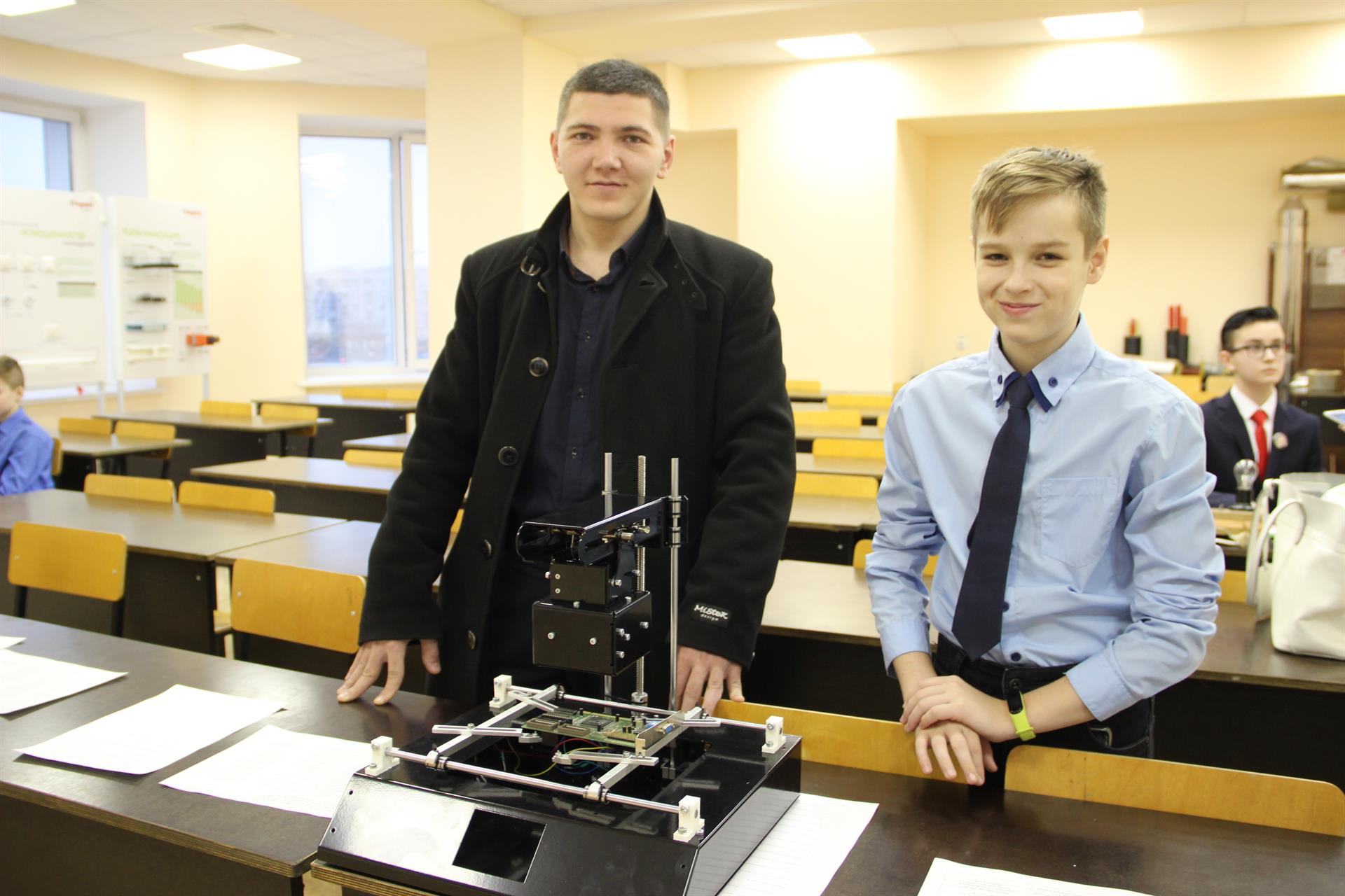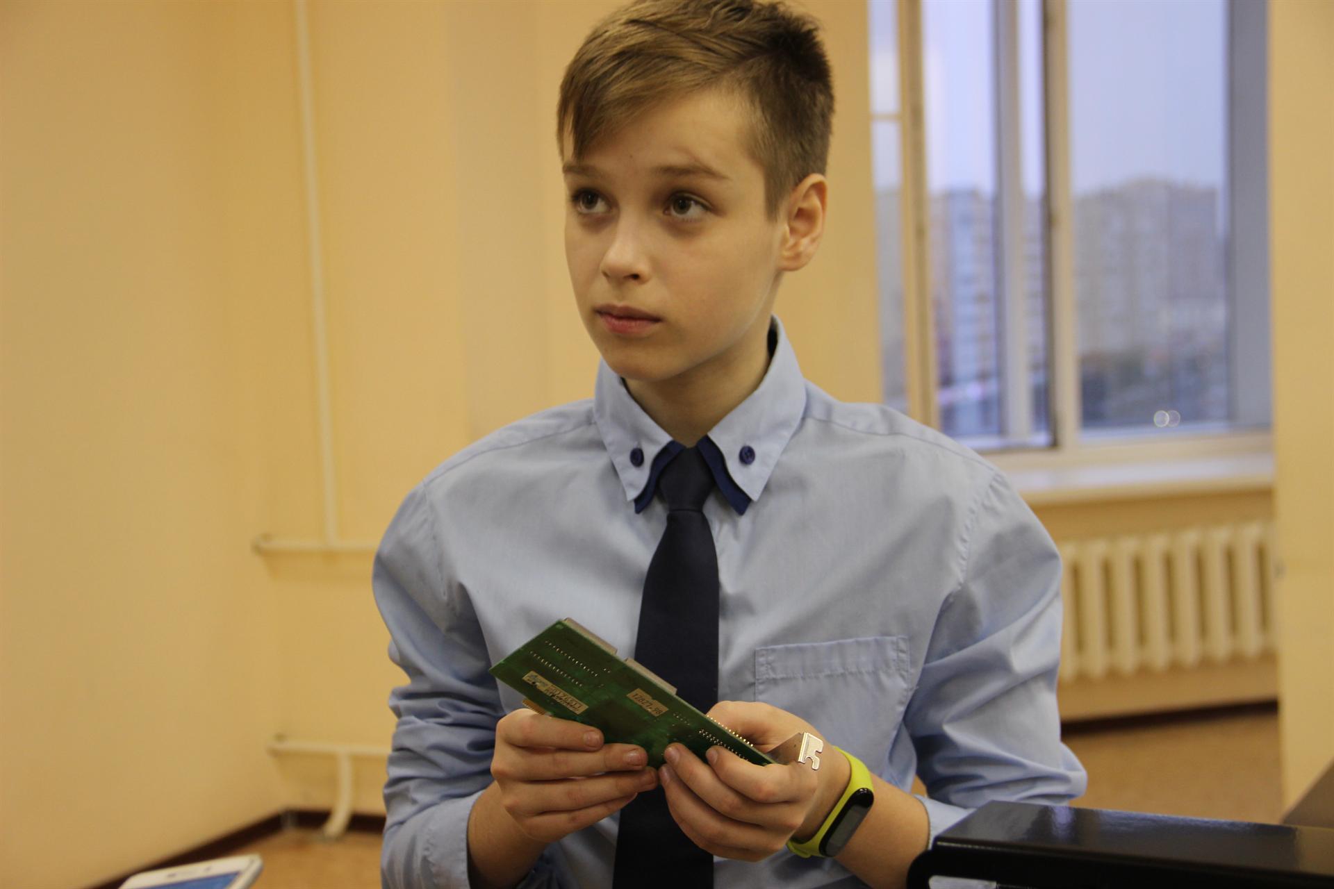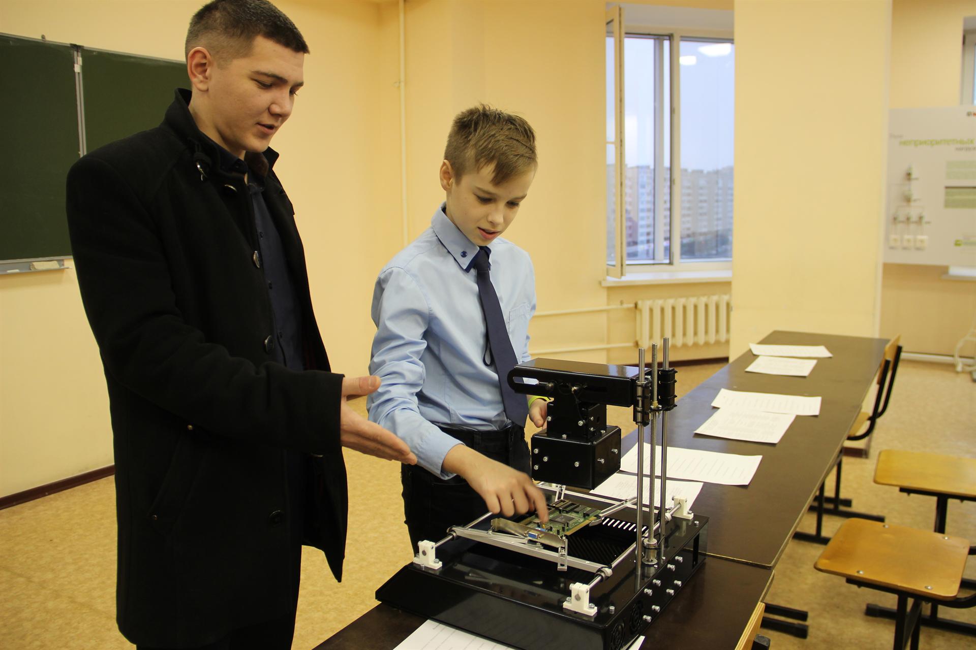 Ренат Нургатин учится в 6 классе школы № 42. Он представил проект «Инфракрасная паяльная станция». Куратором стал вчерашний выпускник КГЭУ, а ныне педагог дополнительного образования Алмаз Шамсияров.