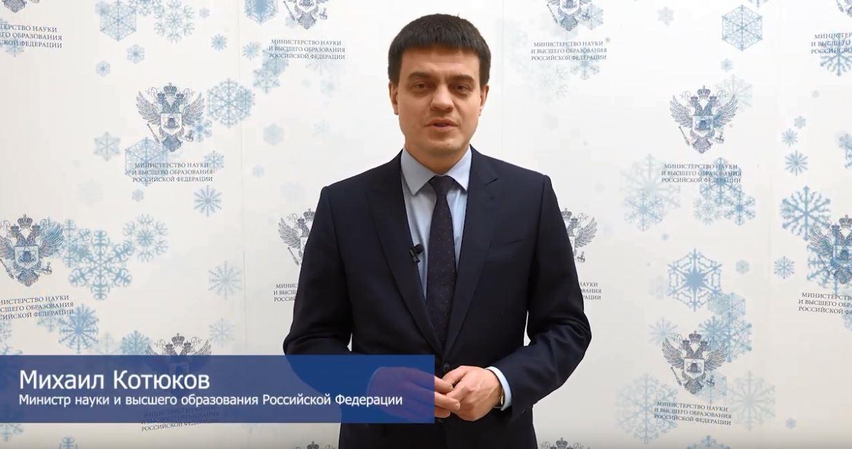С Новогодними поздравлениями к студентам и преподавателям обратился Министр науки и высшего образования РФ Михаил Котюков.