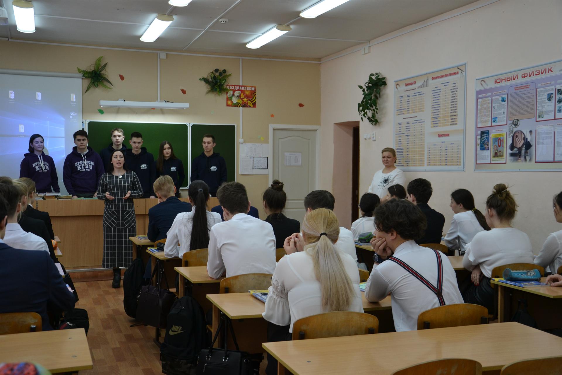 В начале урока представители студенческого профкома и спортивного клуба поделились со школьниками своими впечатлениями от учебы и занятий внеучебной деятельностью в Казанском энергетическом университете.