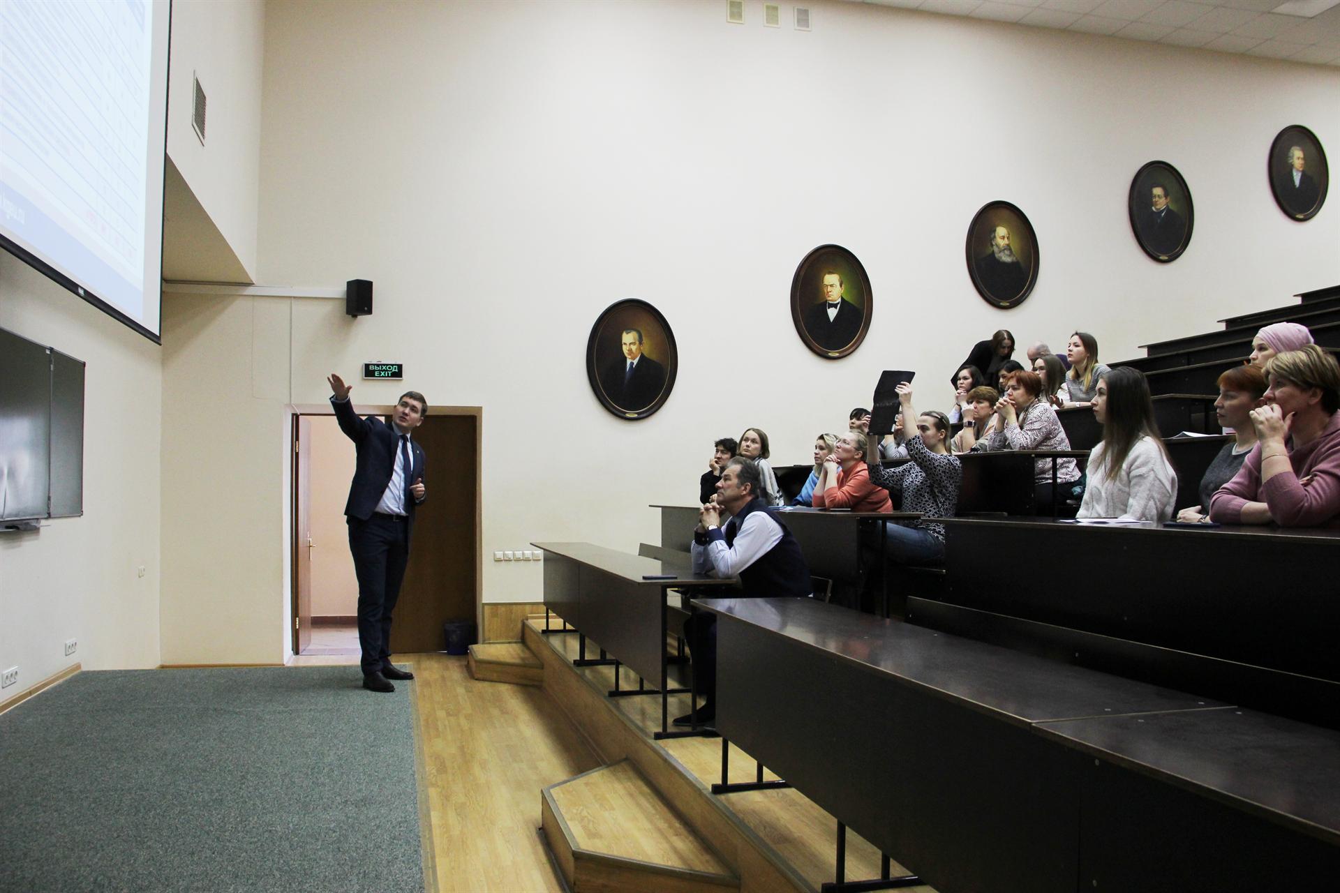 Директор Центра довузовского образования Радик Зайнуллин провел презентацию КГЭУ, подробно рассказал обо всех подразделениях вуза, о формах и методах сотрудничества со школой № 42 и совместных проектах, а также ответил на вопросы участников семинара.