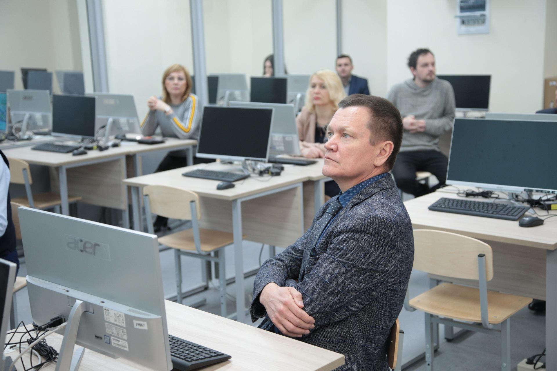Презентация продолжилась в специально оборудованном компьютерном классе. Тамара Григорян рассказала о результатах деятельности ЦТЭО с момента его образования и об основных платформах, на которых проходит онлайн-курс и курсы повышения квалификации – LMS MOODLE, КПК, НПР и МООК.