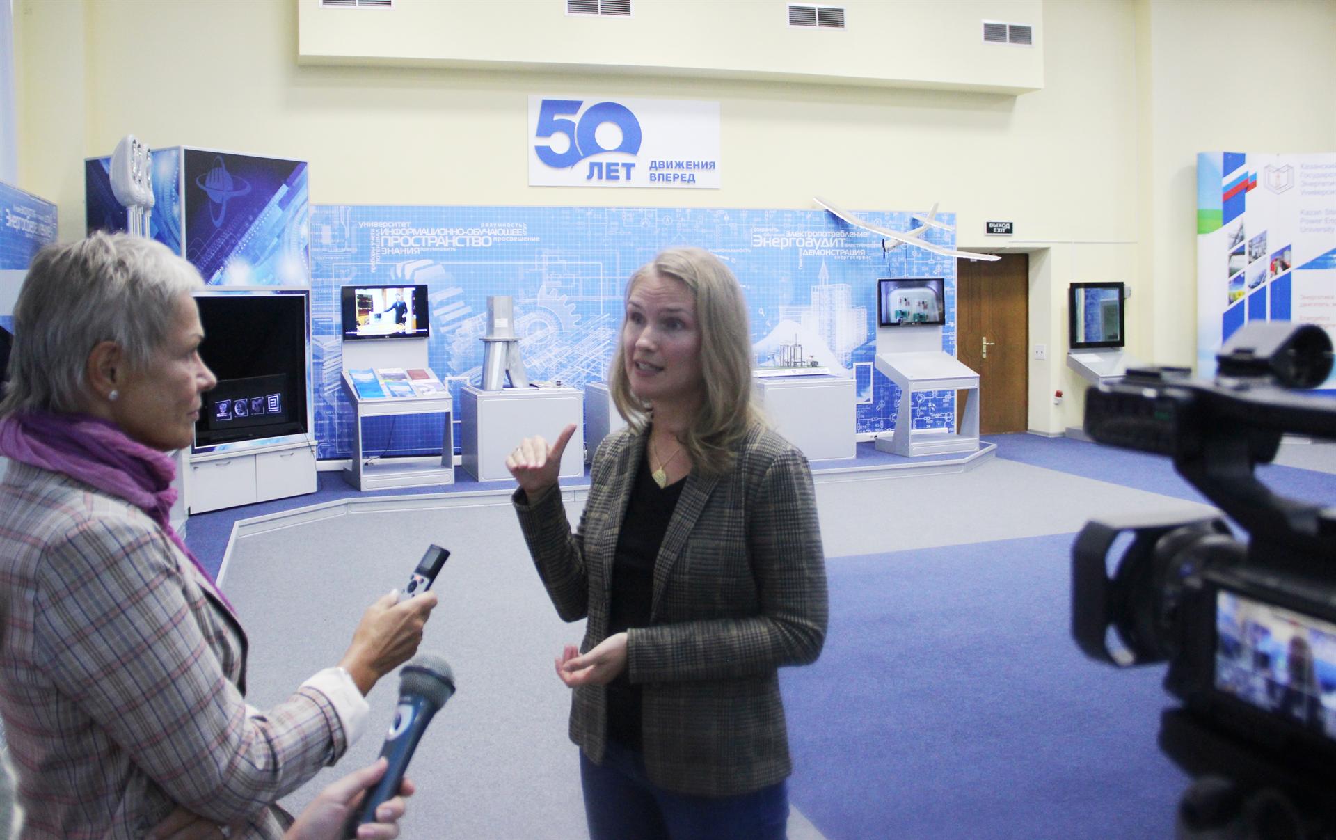 Как эксперт международного уровня в области циркулярной экономики, Дарья Герасименко заинтересовалась инновационными разработками ученых и студентов КГЭУ, представленными в университетском Центре компетенций и технологий в области энергосбережения.