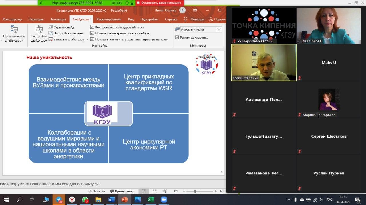 20 апреля прошла онлайн-презентация концепции университетской "Точки кипения КГЭУ".