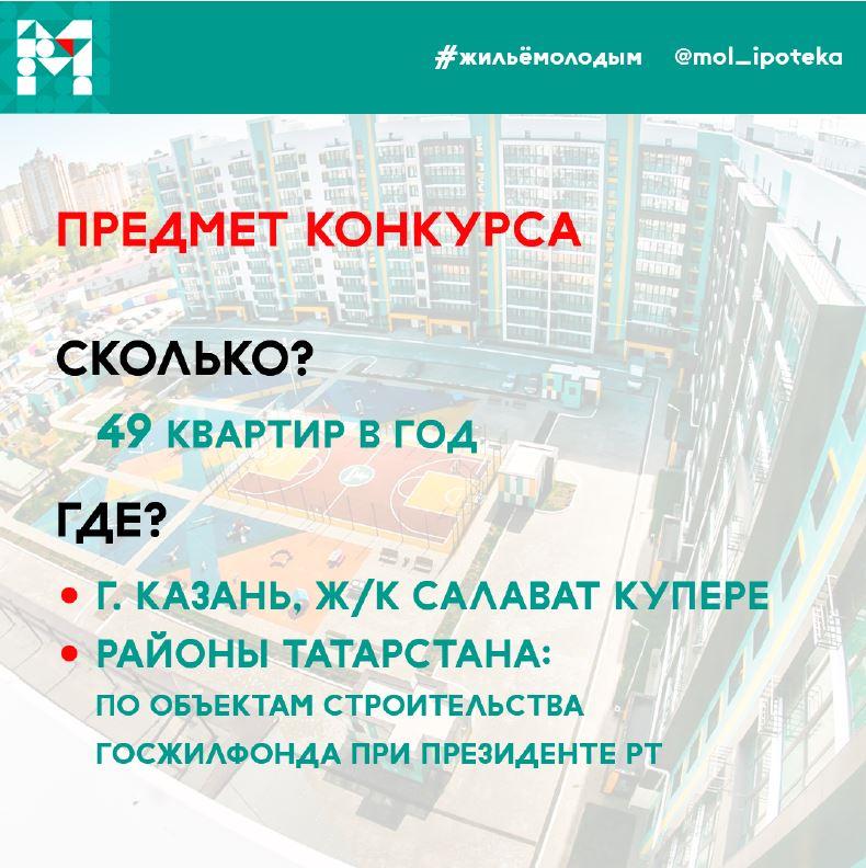 Подробную информацию об участии в конкурсе, подаче заявки можно узнать в официальной группе «Молодежный жилищный конкурс Республики Татарстан» https://vk.com/mol_ipoteka.