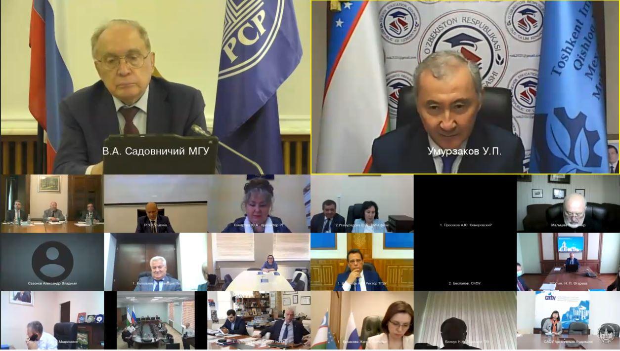 Сомодераторами мероприятия выступили ректор МГУ Виктор Садовничий и ректор Ташкентского института инженеров ирригации и механизации сельского хозяйства Уктам Умурзаков.