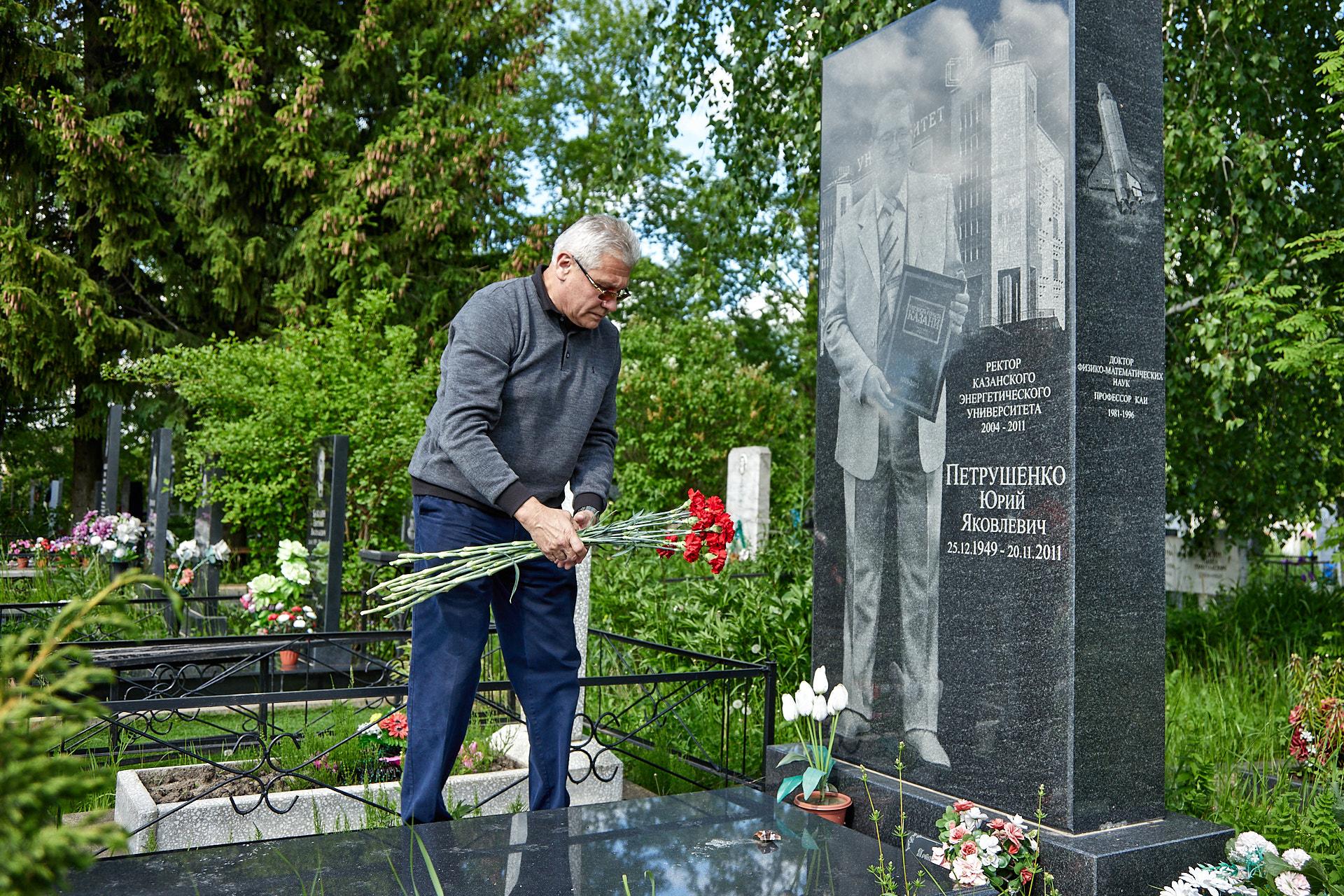 Каждый год на протяжении нескольких лет представители профессорско-преподавательского состава и сотрудники КГЭУ приезжают на кладбище и возлагают цветы на могилы профессоров Ф.З. Тинчурина, Ю.Г. Назмеева и Ю.Я. Петрушенко, чтобы почтить память бывших руководителей Казанского энергетического университета. В этом году из-за мер, связанных с недопущением распространения новой коронавирусной инфекции, поездку пришлось отложить на месяц и ограничить количество сотрудников, которые смогли посетить кладбища.