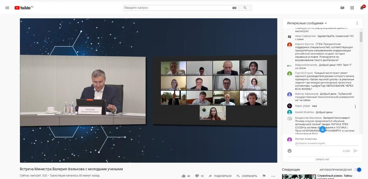 Министр науки и высшего образования РФ Валерий Фальков ответил на вопросы представителей КГЭУ во время встречи с молодыми учеными России.