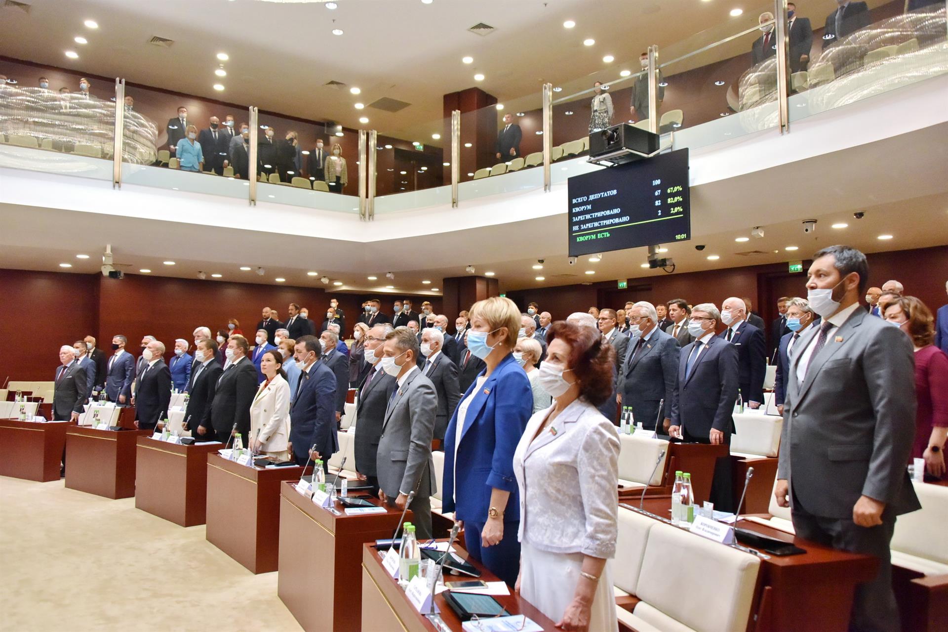 Провел заседание Председатель Государственного Совета РТ Фарид Мухаметшин. В работе парламентариев приняли участие Президент Республики Татарстан Рустам Минниханов, Премьер-министр РТ Алексей Песошин, другие официальные лица.