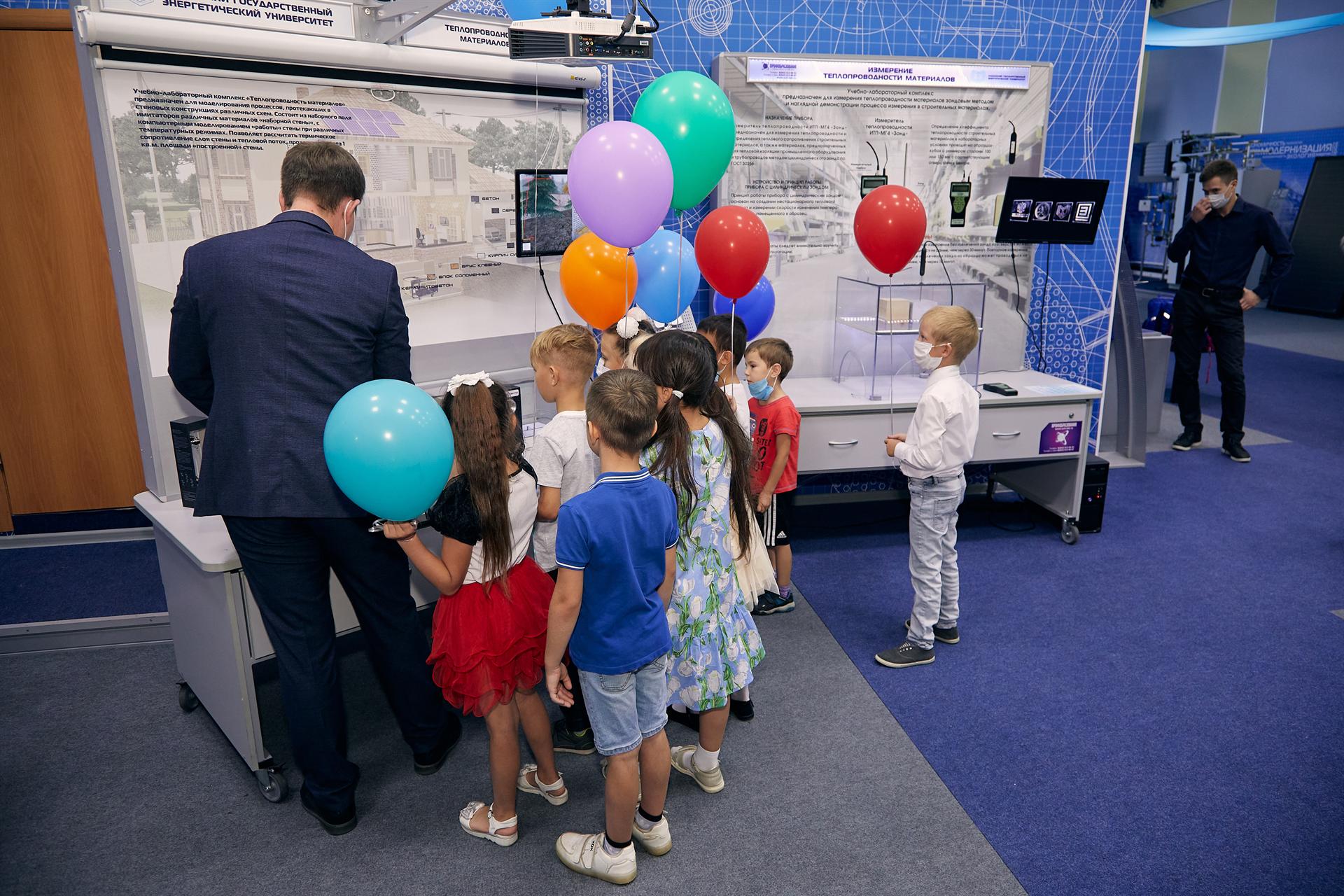 На экскурсии ребятам показывали выставочные стенды с макетами зданий и площадок, разработками и рабочими установками энергоуниверситета. В течение всей экскурсии без остановки возникали вопросы у детей: Что такое станция? А что будет если 100 градусов? А можно делать дом из соломы? Это похоже на Луну или на Диван? Шли дискуссии между детьми и экскурсоводом Радиком Зайнуллиным, который смог в игровой форме объяснить и показать на практике ребятам простейшие законы физики.