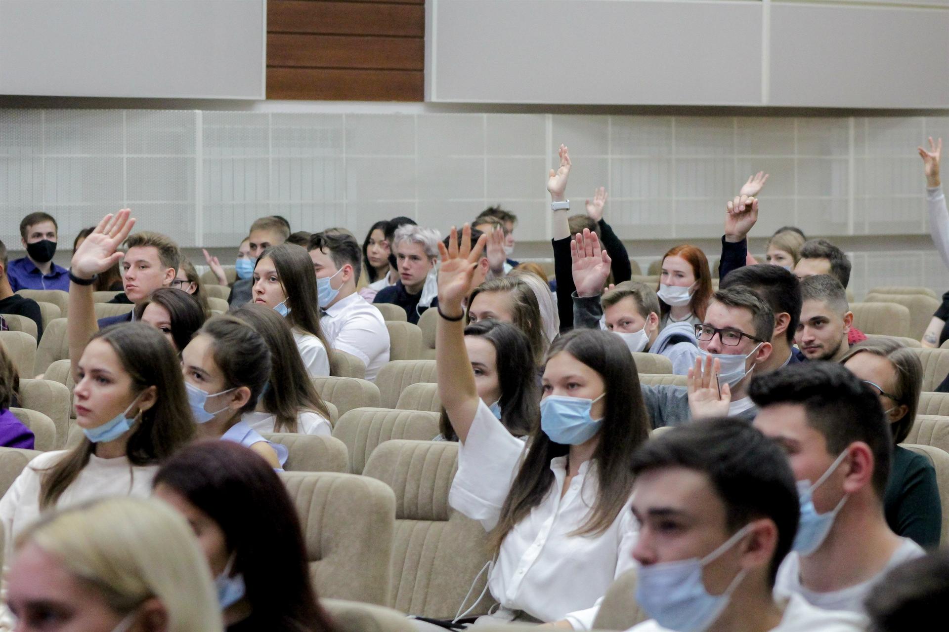 На встрече присутствовали представители студенческого актива. Они воспользовались возможностью задать вопросы о перспективах развития вуза в Республике Татарстан.