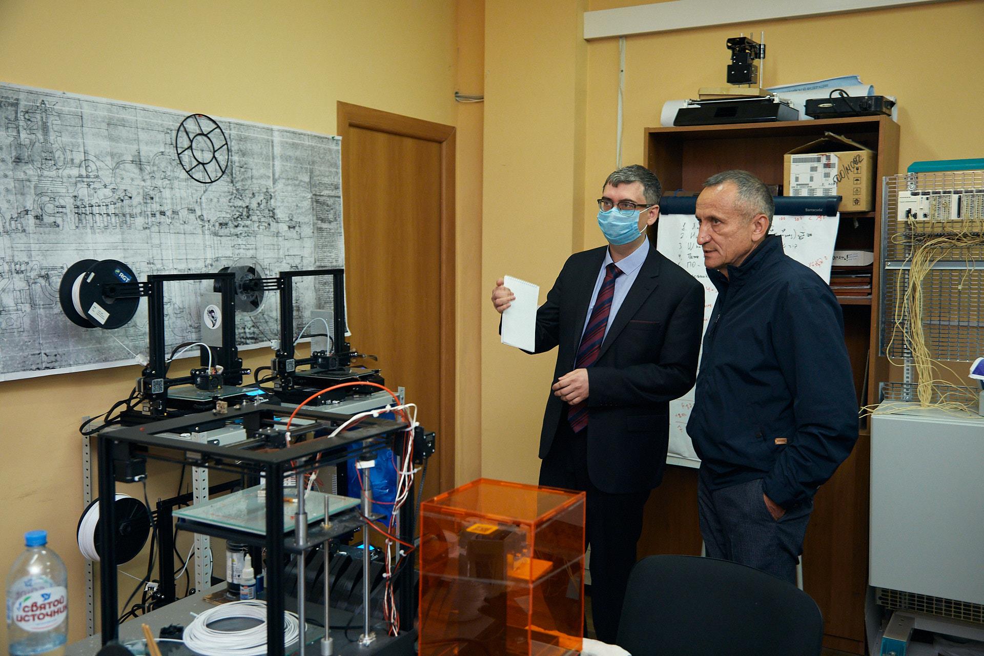На площадке под руководством директора МИЦ Александра Богданова и ведущего инженера Центра Валерия Данилова студенты буквально из подручного материала изготавливают прототипы систем - умный дом, автоматизированные теплицы с гидропоникой и так далее. Эдвард Абдуллазянов положительно оценил результаты технического творчества молодежи и пообещал помочь с расходными материалами.