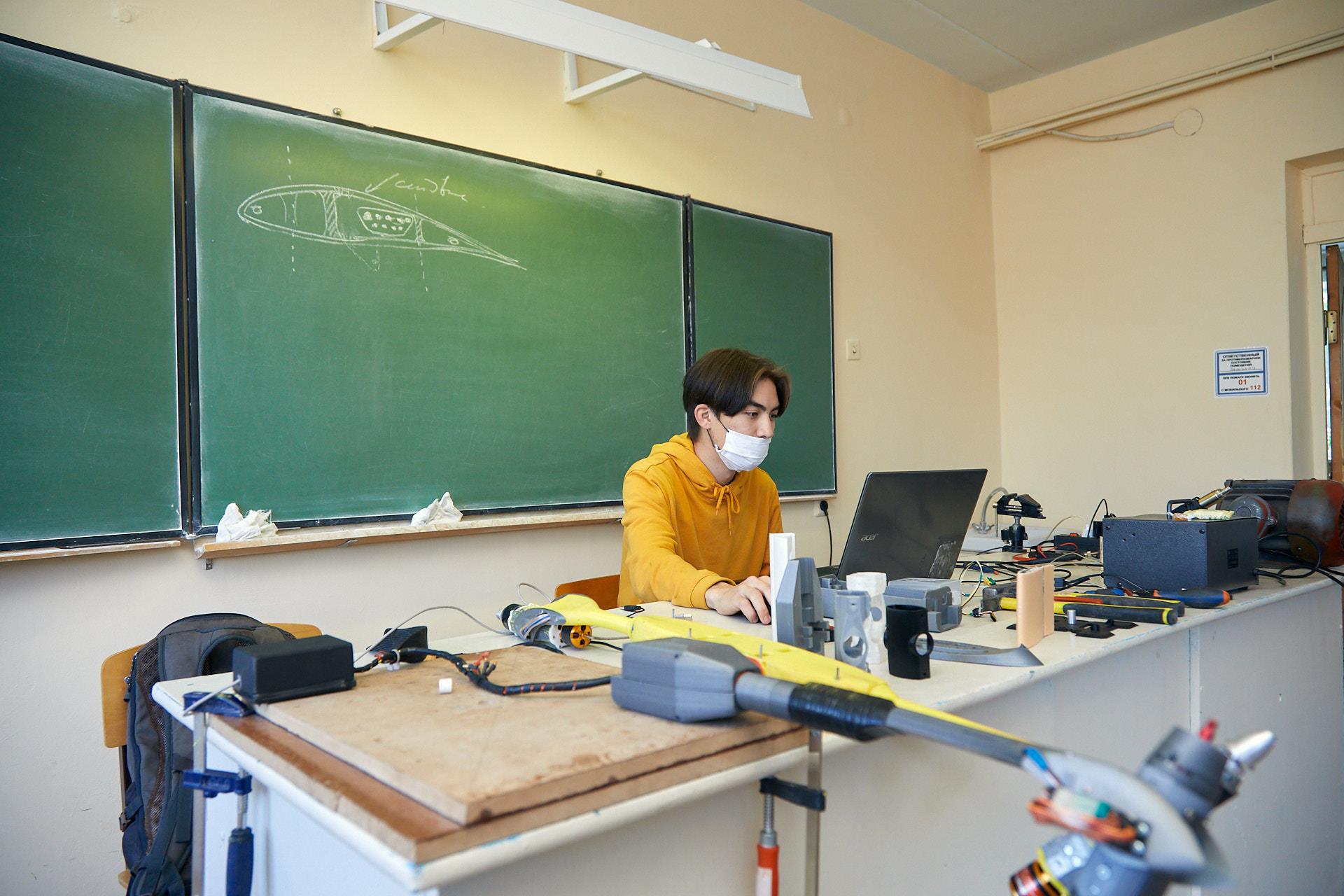 Проект наставника МИЦ Евгения Гайнулова «лаборатория технотворчества» тоже связан с беспилотниками. Группа студентов под его руководством занимается разработкой прототипа конвертоплана – самолета с вертикальным взлетом. В отличие от обычного беспилотника, он взлетает как мультикоптер, летит, как самолет, и садится (опять как мультикоптер) в любом месте. Конвертоплан может применяться, например, для облета линий электропередачи в труднодоступных местах.