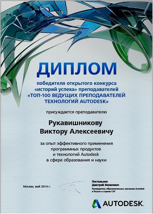 Зав. кафедрой ИГ Рукавишникову В.А. вошел в число победителей открытого конкурса "истории успеха" преподавателей "ТОП-100 ВЕДУЩИХ ПРЕПОДАВАТЕЛЕЙ ТЕХНОЛОГИЙ AUTODESK"
