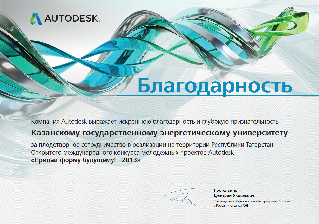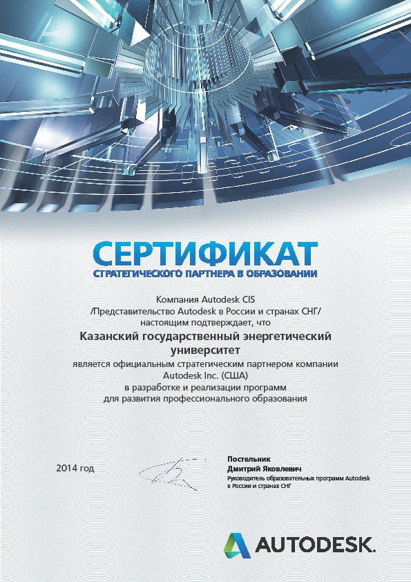 Autodesk мировой лидер по разработке программного обеспечения для систем автоматизированного проектирования. КГЭУ и компания Autodesk на протяжении трех лет являются стратегическими партнерами в области образования.