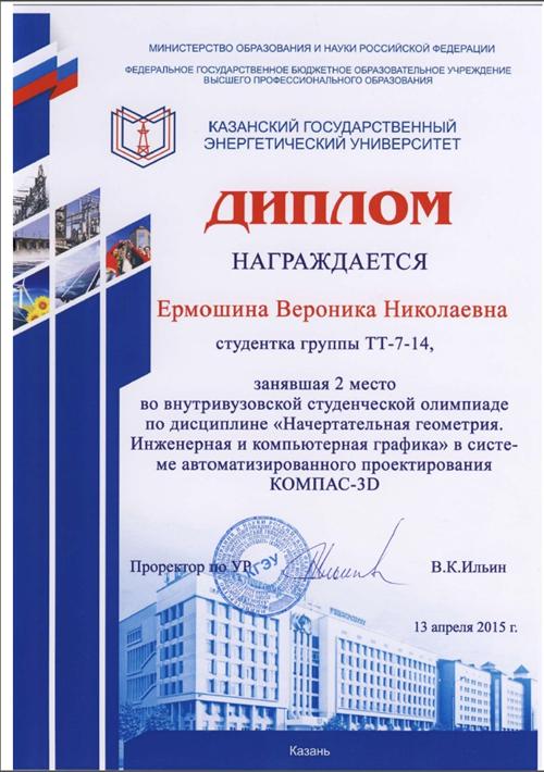 Второе место - Ермошина Вероника Николаевна, гр. ТТ-7-14