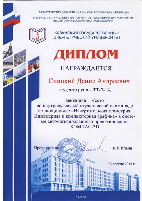 Победителями студенческой олимпиады по моделированию в системе AutoCAD 2015 стали студенты: